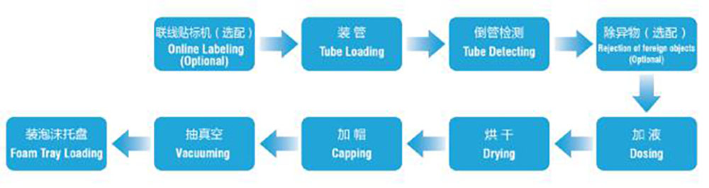 1.One assembling line suits for 13*75mm, 13*100mm, 16*100mm tube